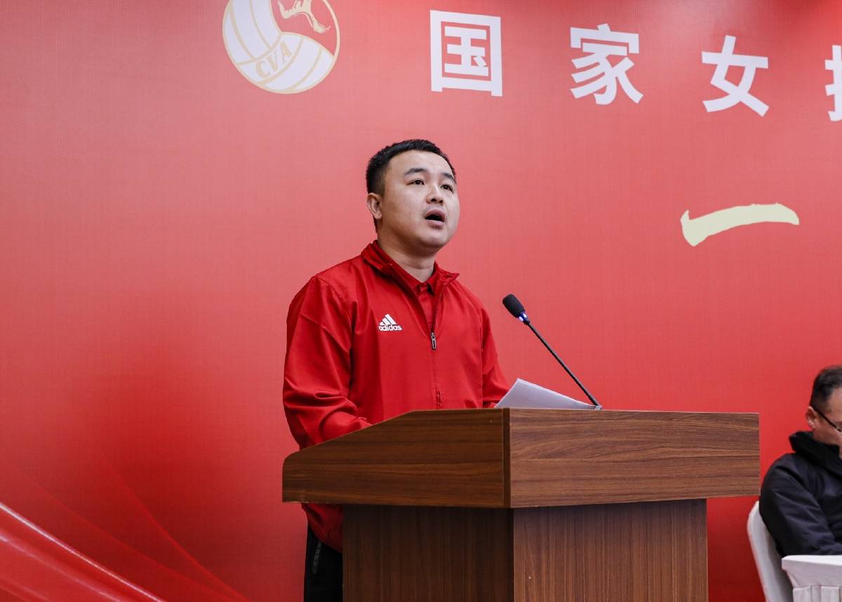 在齊唱國歌后,袁心玥作為運動員代表發(fā)言,她表示要傳承好中國女排精神的接力棒,踏實訓練,在接下來的日子里與大家共勉,齊心協(xié)力為國爭光。