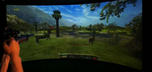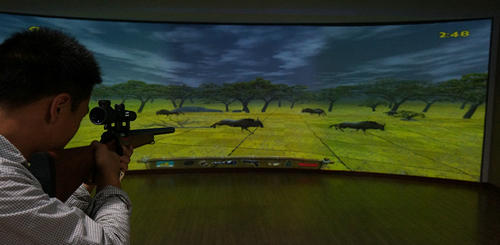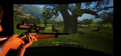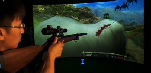 wingStar多通道環(huán)屏模擬狩獵系統(tǒng)是2012年推出的全仿真環(huán)屏狩獵射擊產(chǎn)品。該產(chǎn)品采用6-12米寬專業(yè)環(huán)形投影幕墻,采用仿真金屬手動狙擊步槍模擬器在景色宜人的原始森林中射擊鹿等多種動物。阻擊步槍模擬器必須拉槍栓壓彈,這樣射擊時仿真獵槍有強(qiáng)烈的射擊震動感,配合現(xiàn)場5.1聲道環(huán)繞立體音頻,利用計(jì)算機(jī)技術(shù)生成一個逼真的、具有視、聽、等多種感知的虛擬環(huán)境,使體驗(yàn)者產(chǎn)生身臨其境的感覺。