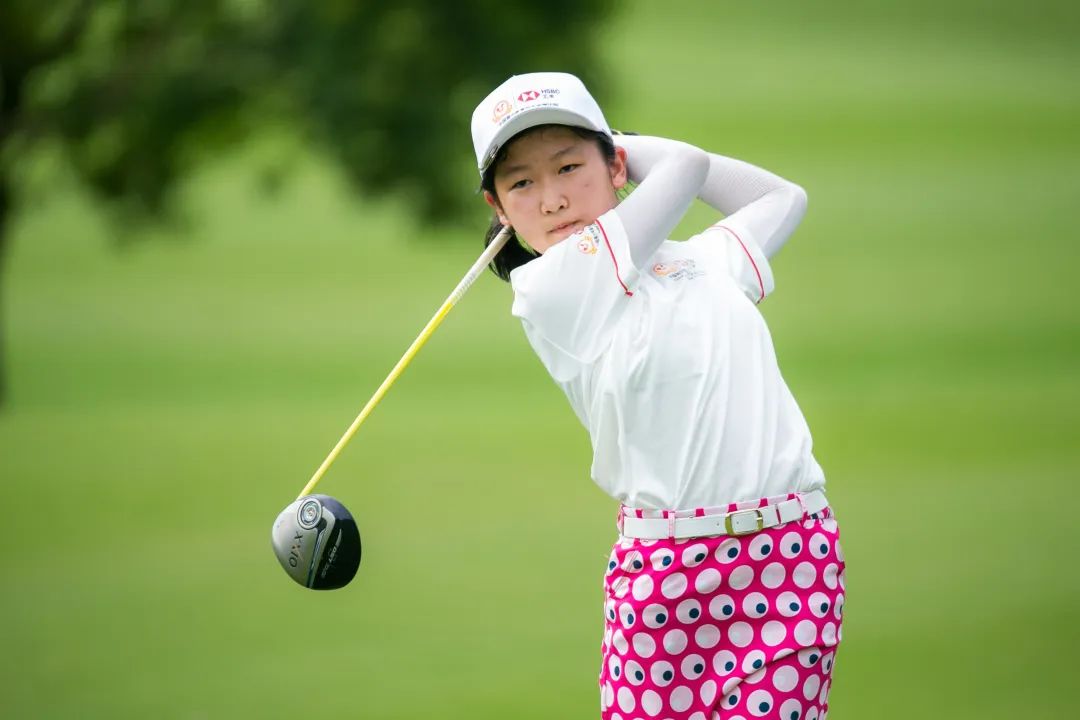 女子A組的競(jìng)爭(zhēng)激烈,上海14歲姑娘曹欣妤77桿,領(lǐng)先深圳女孩鄭雅蔙1桿。張婉怡79桿,排名第三。曹欣妤剛升女子A組不久,今天的唯一小鳥來自個(gè)人第13洞(球場(chǎng)四號(hào)洞)。20碼的距離,她58度切球進(jìn)洞。