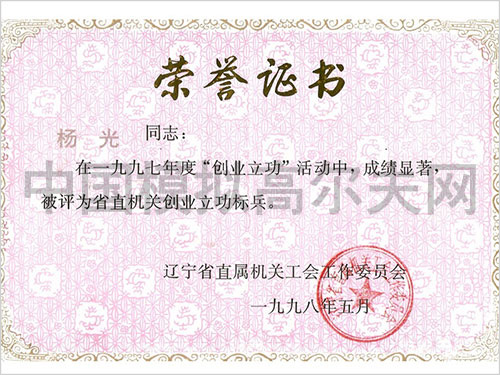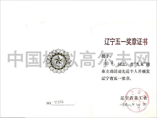 遼寧五一獎?wù)伦C書
